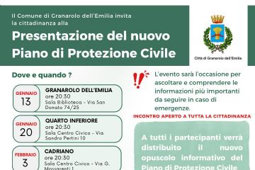 Il Comune di Granarolo dell’Emilia invita la cittadinanza a partecipare agli incontri pubblici di presentazione del nuovo Piano di Protezione...