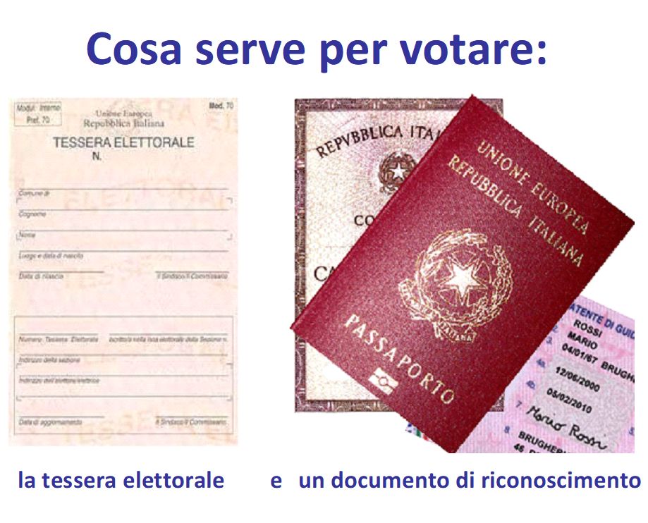Si raccomanda di verificare quanto prima possibile il possesso di un documento di identità valido, della tessera elettorale e la presenza, in quest'ultima, di spazi vuoti per l'apposizione del bollo elettorale.