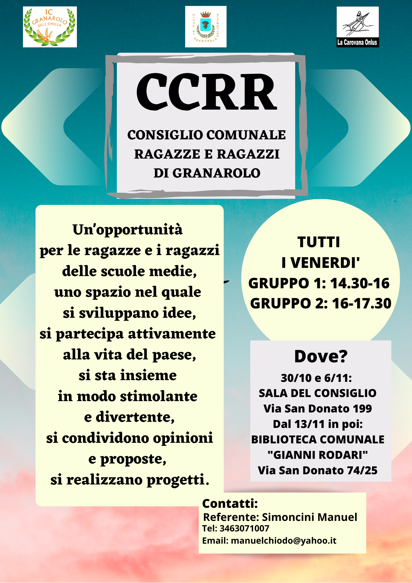 🙋🙋♀️ venerdì 30 ottobre si riunisce il CCRR, consiglio comunale delle ragazze e dei ragazzi che frequentano le scuole medie.