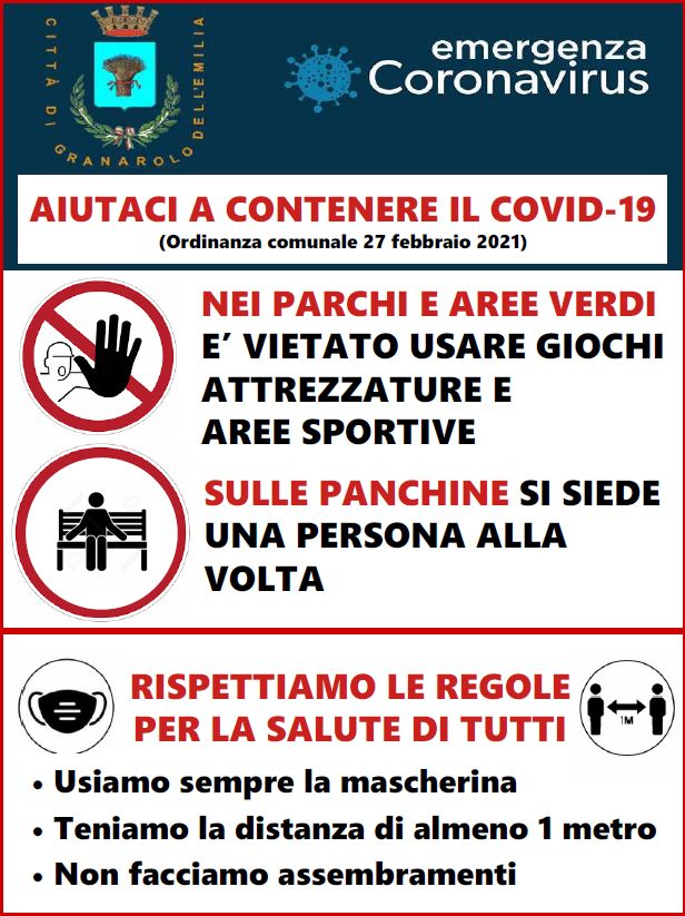 📌 nei parchi e giardini pubblici è vietato l'utilizzo di strutture, giochi per bambini e aree sportive libere presenti;