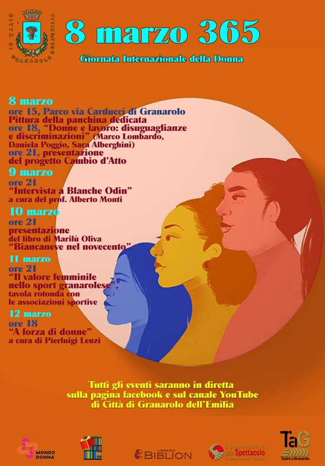Quest’anno l’Amministrazione Comunale, in collaborazione con la Biblioteca comunale Gianni Rodari, la Libreria Biblion, il TaG Teatro a Granarolo, l’Associazione MondoDonna Onlus, il Gemellaggio Granarolo-Bagnères, Coop Alleanza 3.0 e le società sportive di Granarolo, ha organizzato una settimana di iniziative online per approfondire la tematica riguardante le politiche di genere trasversalmente a diversi ambiti.