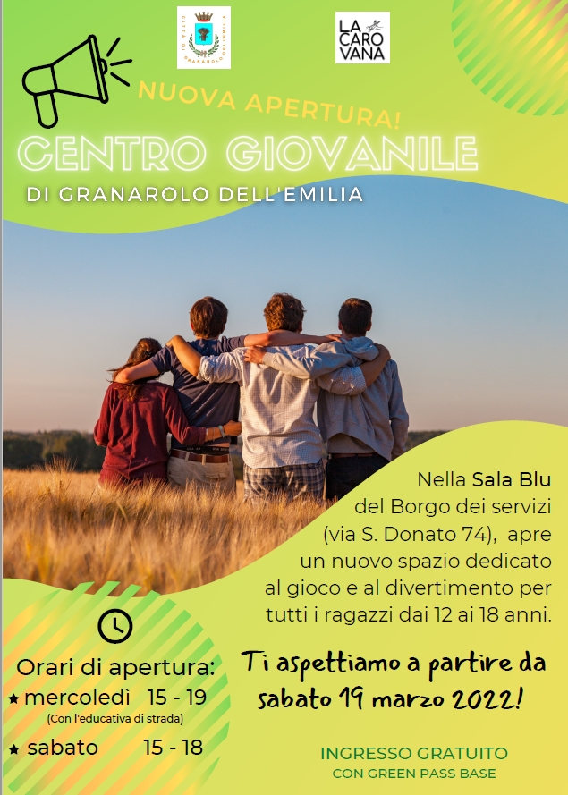 Nasce anche a Granarolo dell’Emilia un centro giovanile dedicato a tutti gli adolescenti. Il primo appuntamento inaugurale è sabato 19 marzo alle ore 15. Il luogo che il Comune ha deciso di dedicare al centro giovanile è la Sala Blu del Borgo Servizi (via San Donato 74), dove è stato allestito uno spazio per il gioco e il divertimento.