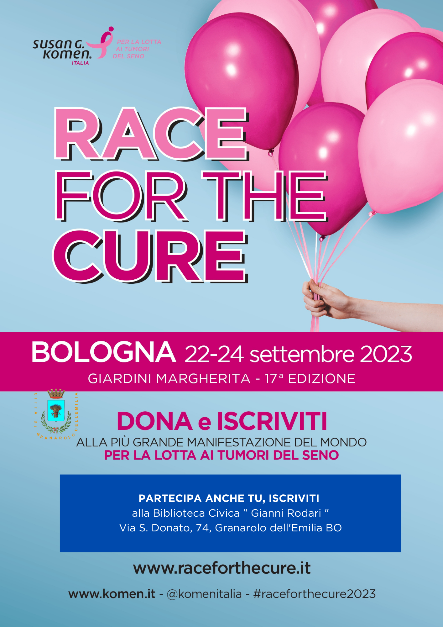 Il Comune di Granarolo dell’Emilia ha dato il patrocinio all’iniziativa “Race for the Cure”, la più grande manifestazione al mondo per la lotta ai tumori del seno, che si svolgerà il prossimo fine settimana (22-24 settembre) ai Giardini Margherita a Bologna. L’evento è promosso dalla fondazione Komen.