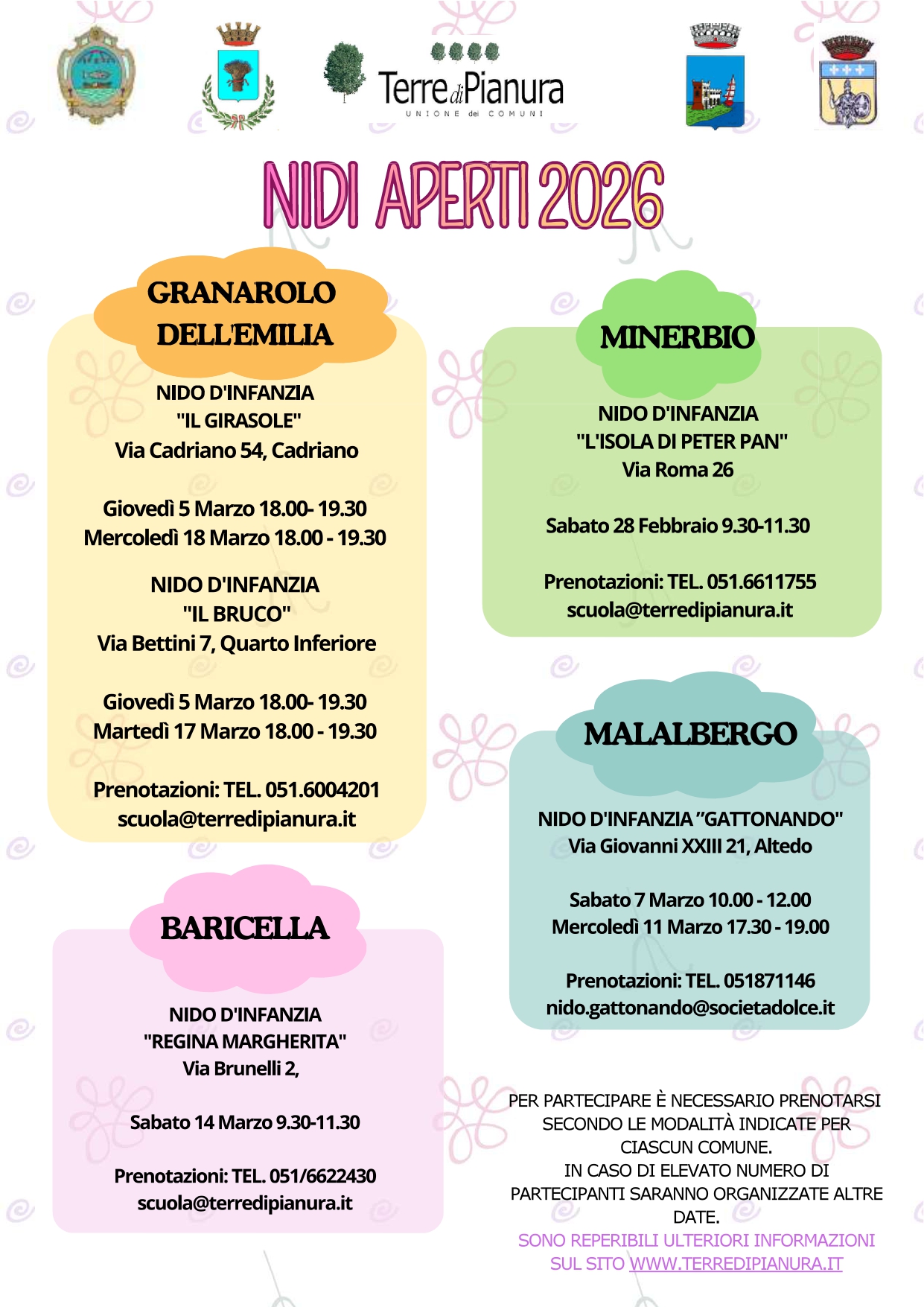 Per partecipare è necessario prenotarsi secondo le modalità indicate per ciascun Comune nel volantino allegato.
