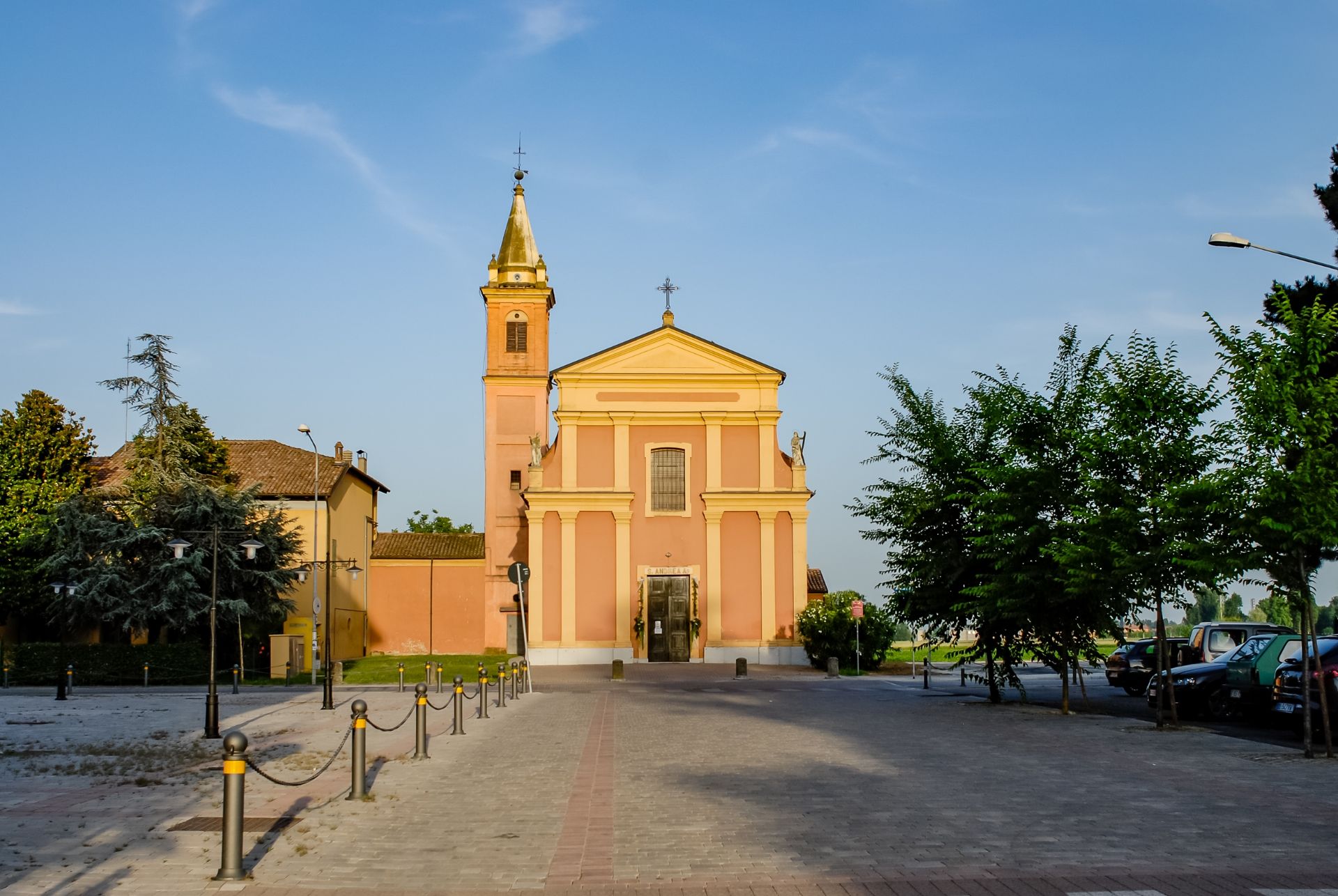 Già citata negli archivi del 1300, venne costruita nella sua forma attuale tra il 1628 e il 1668 con interventi dell’architetto bolognese Bartolomeo Belli per la costruzione della volta. Il campanile e la sagrestia sono invece frutto di rimaneggiamenti.