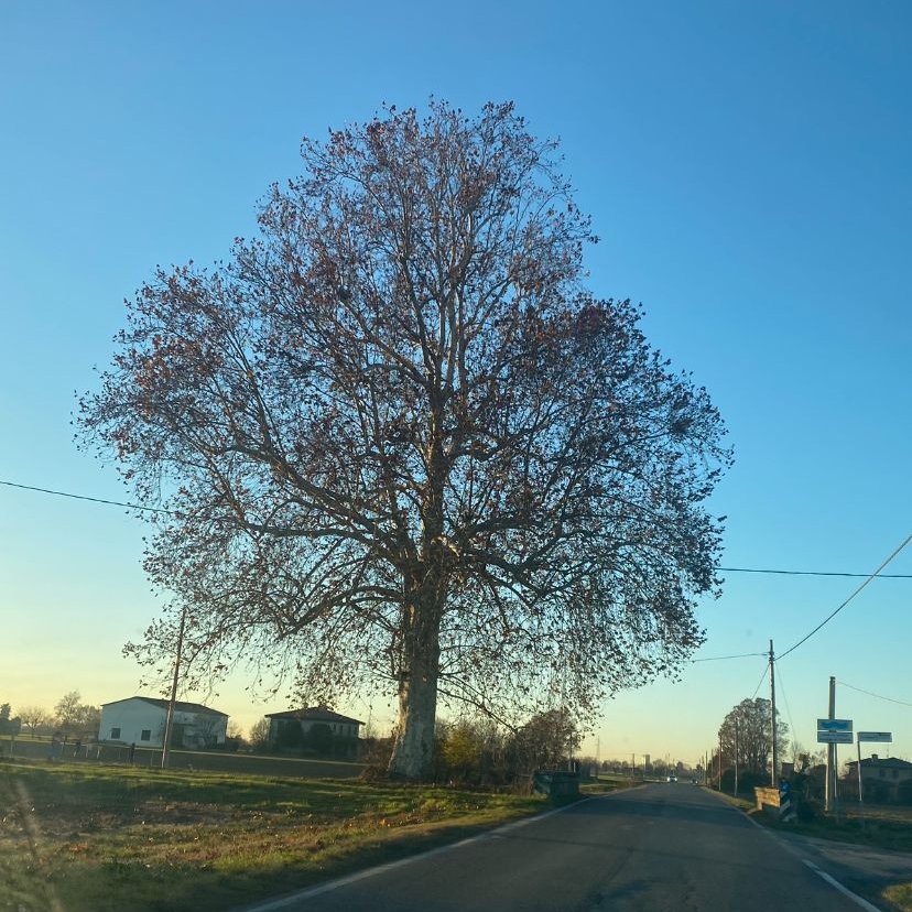Il grande platano (Platanus hybrida) è riconosciuto come una pianta monumentale dalla Regione Emilia-Romagna (ID 33-05) fin dal 1989.