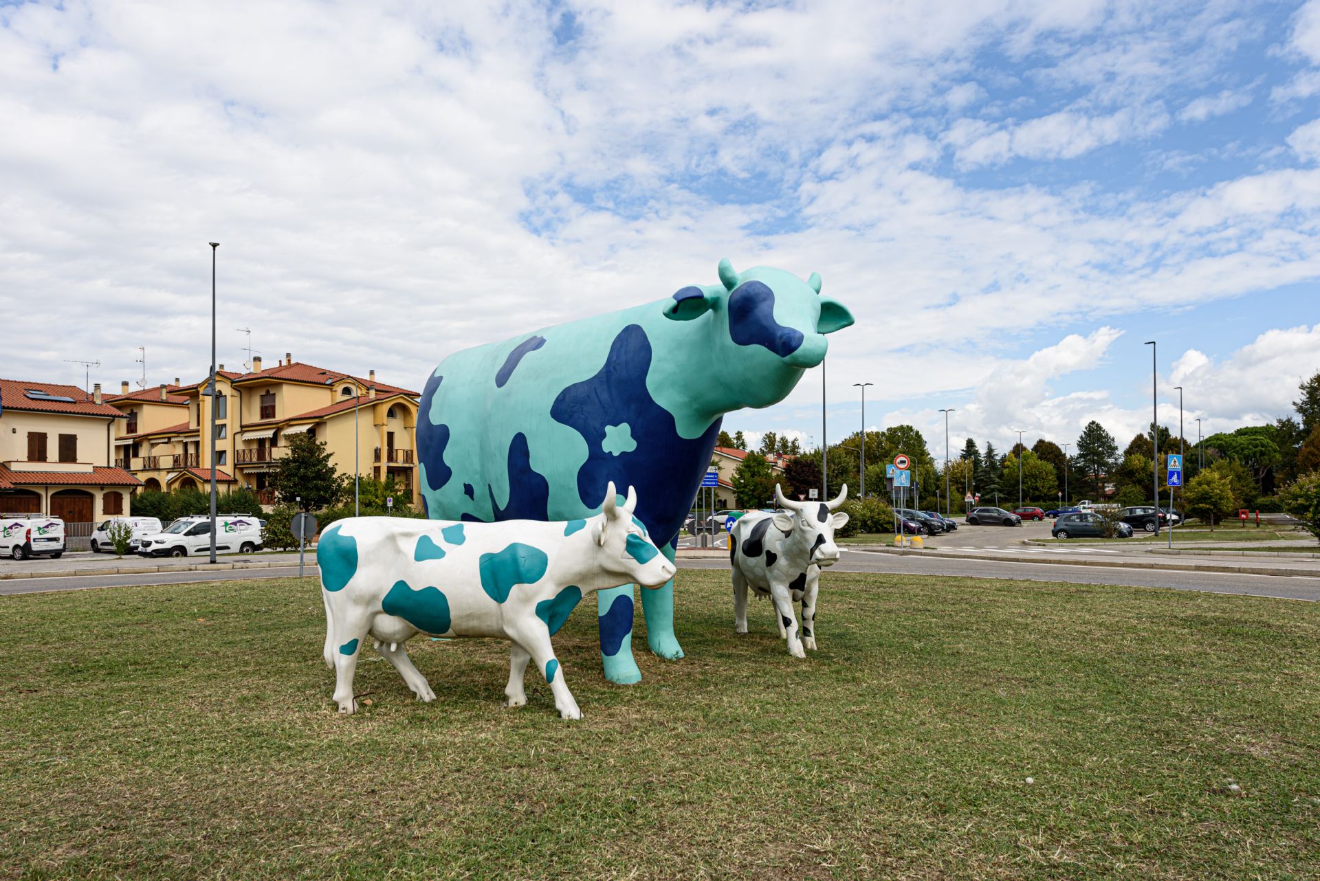La rotonda con la mucca Lola ricorda il luogo in cui sorse lo stabilimento della Granarolo Latte, che oggi si trova a Bologna.
