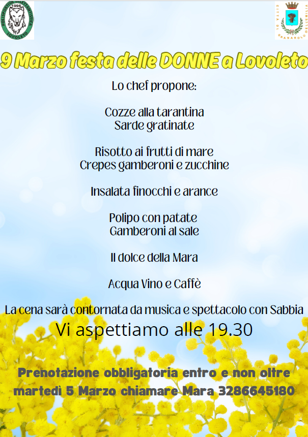 In occasione della Giornata internazionale della Donna, la Polisportiva Dilettantistica di Lovoleto organizza una cena per la "Festa delle Donne".