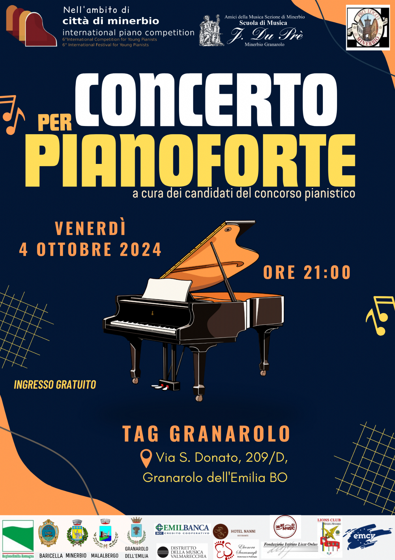 Imperdibile appuntamento musicale, venerdì 4 ottobe alle ore 21 al TaG, con il Concerto per Pianoforte a cura dei candidati del concorso pianistico, nell'ambito della "Città di Minerbio International Piano Competition".