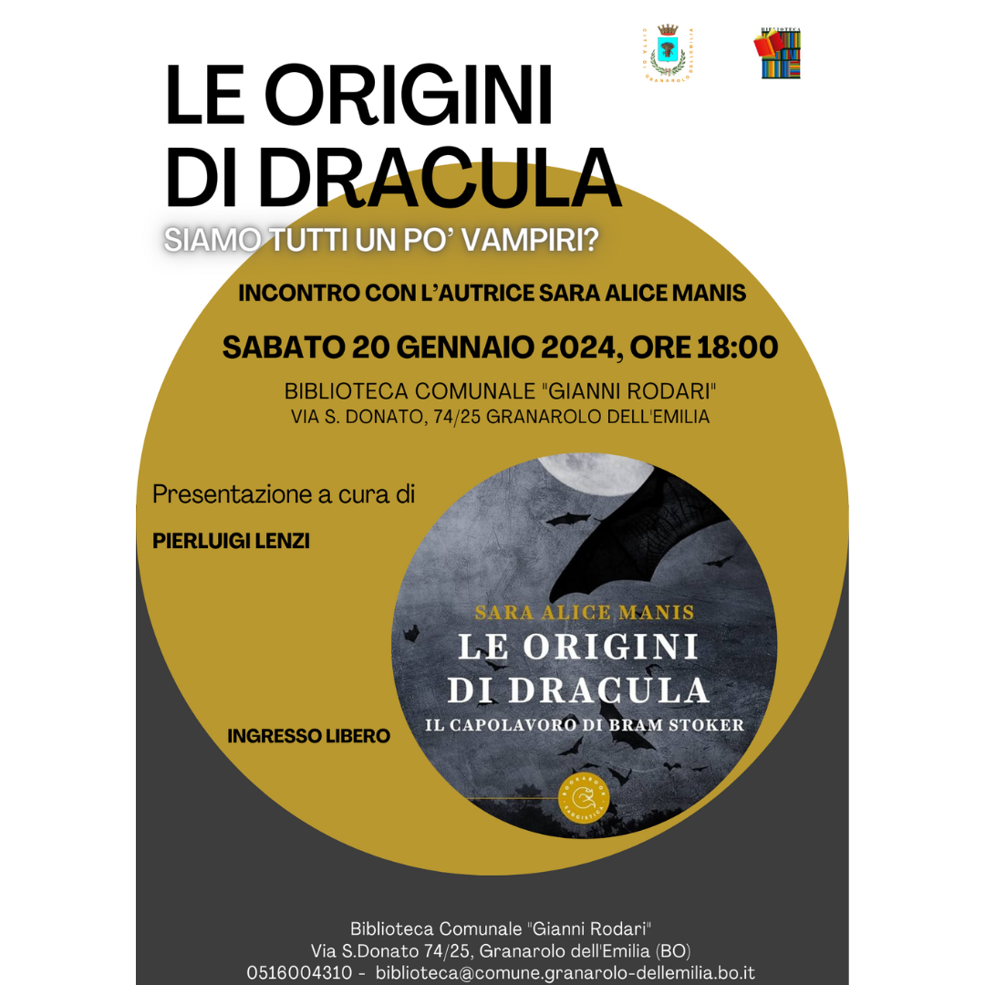 Delle origini del vampiro padre di tutti i vampiri si parla domani, sabato 20 gennaio, alle ore 18 in biblioteca comunale "Rodari" (via San Donato 74/25).