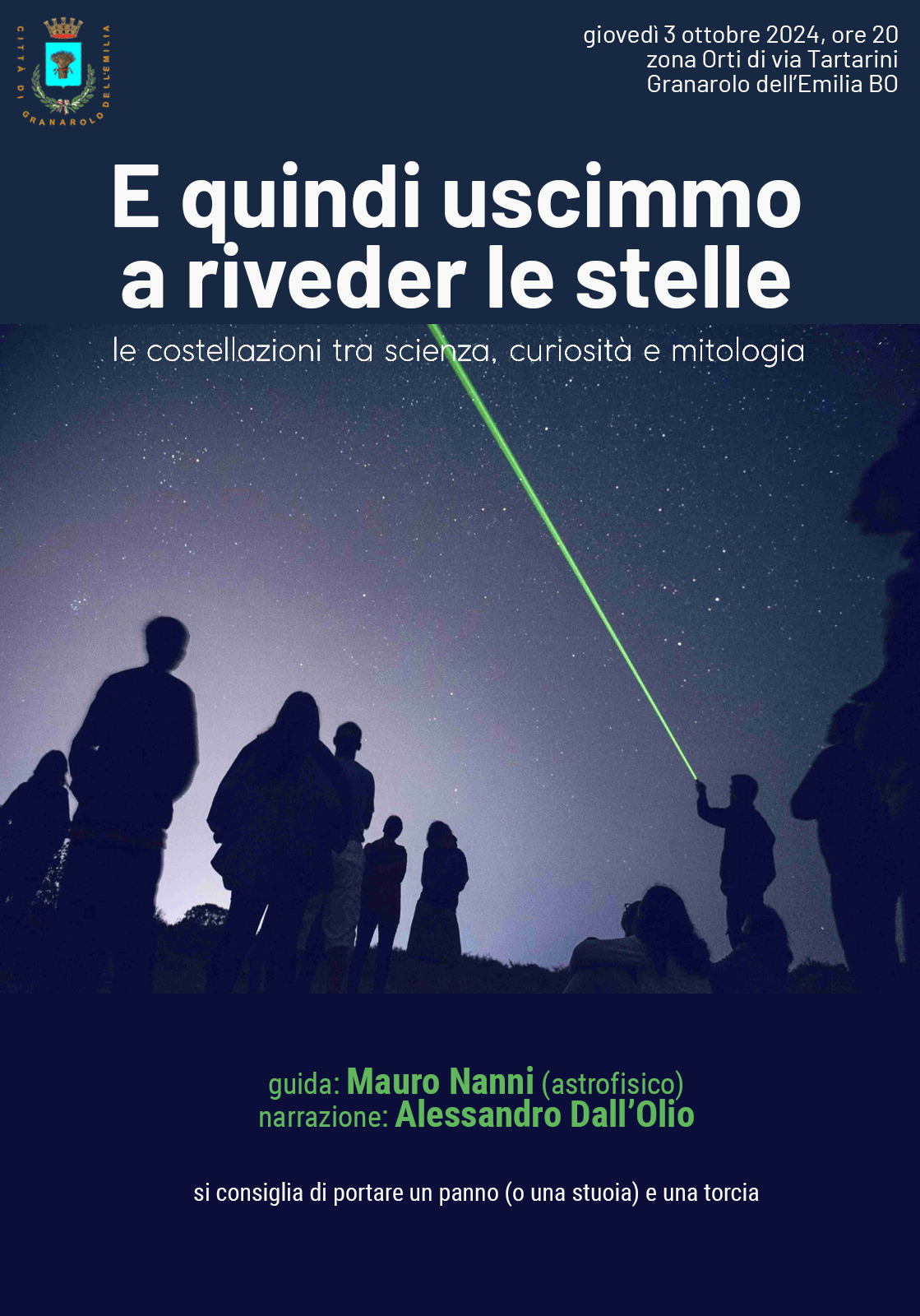 La partecipazione è gratuita, si consiglia di portare un panno o una stuoia e una torcia.