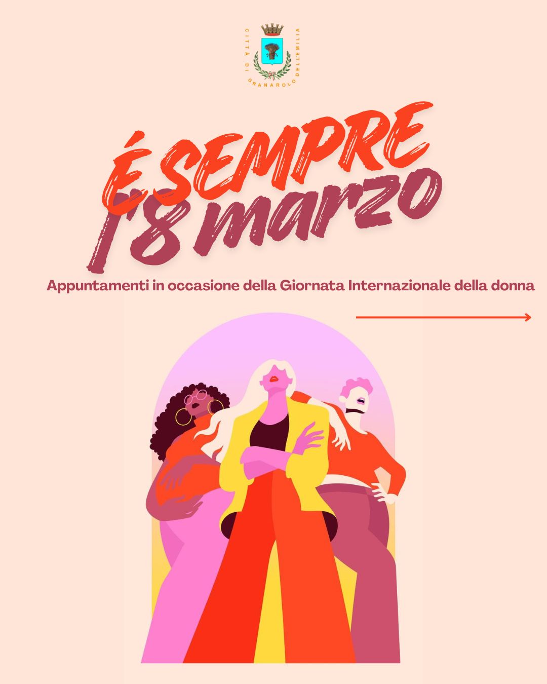 In occasione dell'8 marzo, il Comune di Granarolo dell'Emilia promuove un ricco calendario di iniziative dal titolo "È sempre l'8 marzo". Un programma che unisce riflessione, cultura e momenti di convivialità per celebrare l'universo femminile e promuovere una cultura plurale e di genere.