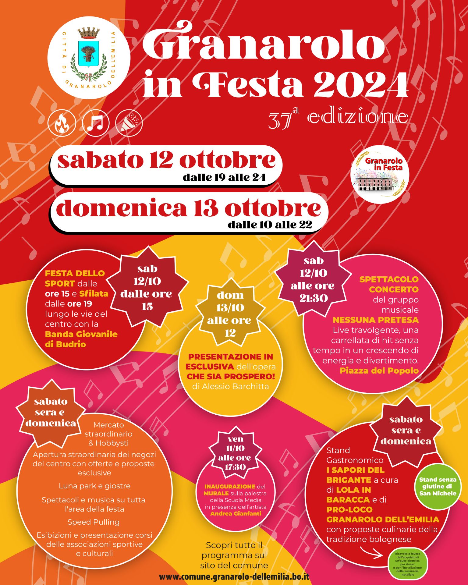 STAND GASTRONOMICO “I SAPORI DEL BRIGANTE” A CURA di LOLA IN BARACCA ODV e di PRO-LOCO GRANAROLO DELL’EMILIA sul piazzale dietro il Municipio con proposte culinarie della tradizione bolognese.