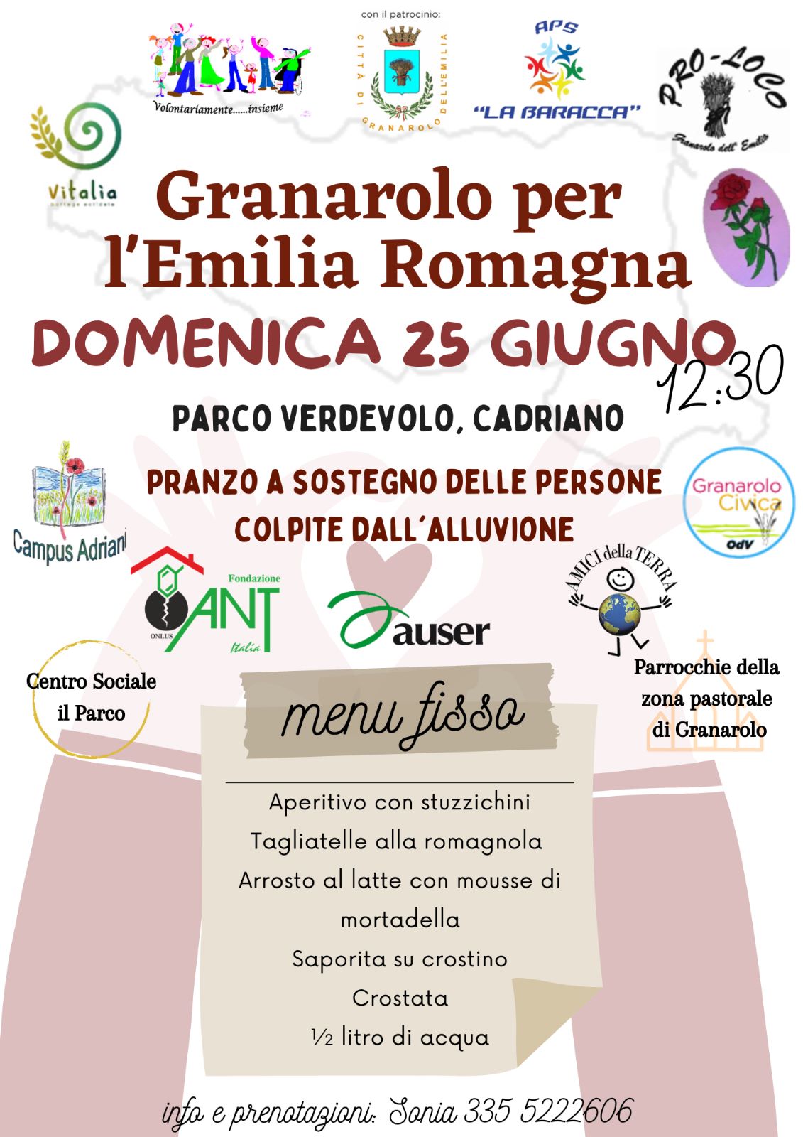 Le associazioni riunite nel Tavolo del Volontariato di Granarolo, con il patrocinio del Comune, organizzano domenica 25 giugno un grande pranzo il cui ricavato andrà a sostegno delle popolazioni colpite dall'alluvione. Il pranzo "Granarolo per l'Emilia-Romagna" si terrà al parco Verdevolo di Cadriano alle ore 12.30.