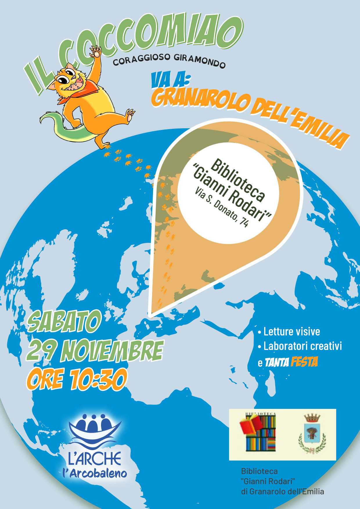Sabato 29 novembre, dalle ore 10:30, la Biblioteca "Gianni Rodari" ospiterà un evento speciale dedicato ai più piccoli: "Il Coccomiao - Coraggioso Giramondo va a Granarolo dell'Emilia".