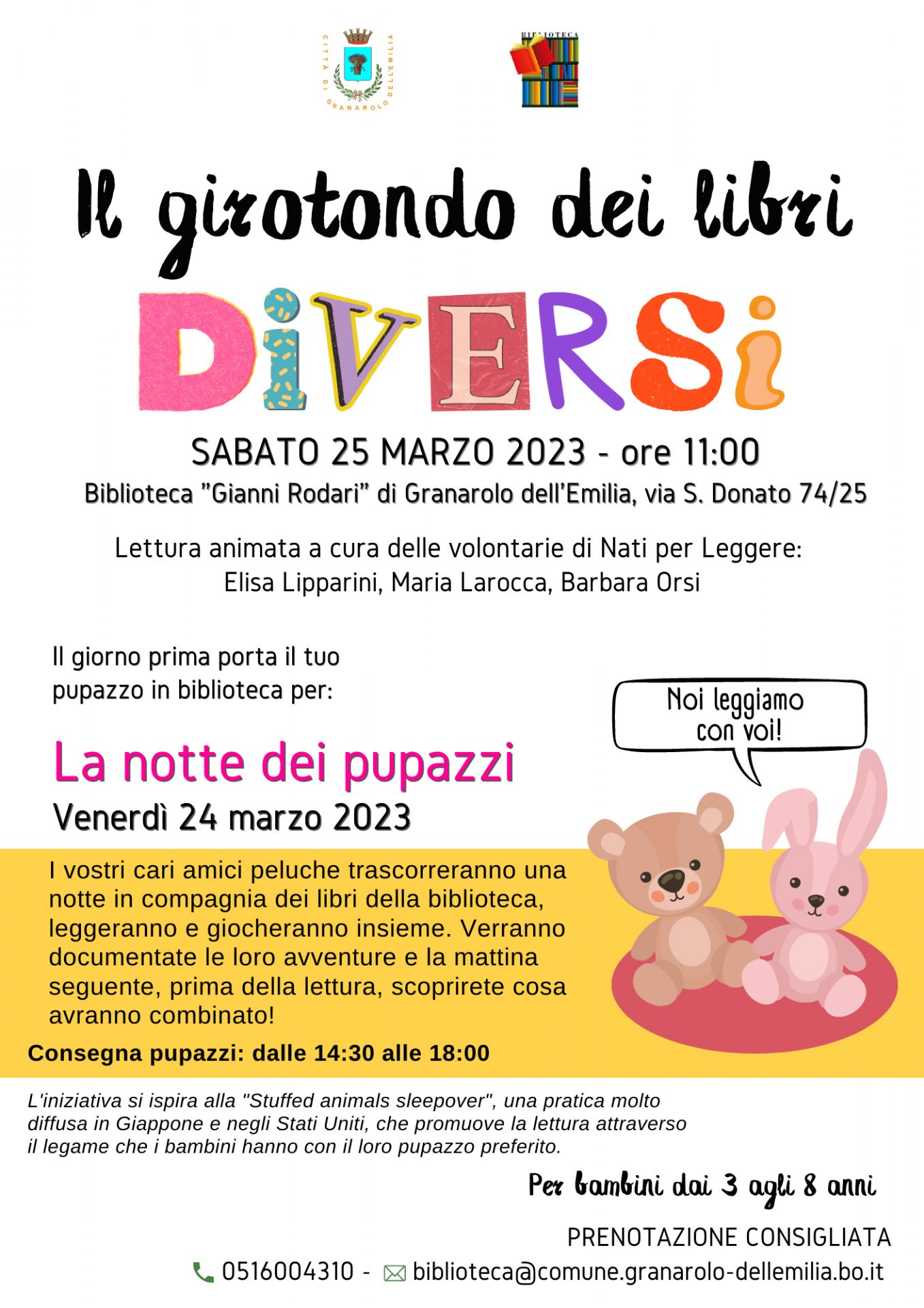 È consigliata la prenotazione al numero 051-6004310 o scrivendo a biblioteca@comune.granarolo-dellemilia.bo.it