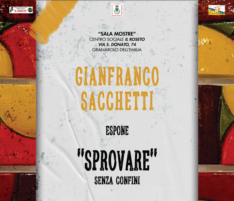 Dal 5 al 13 ottobre 2024, il Centro Sociale "Il Roseto" di Granarolo dell'Emilia ospiterà la mostra d'arte "SPROVARE, senza confini" di Gianfranco Sacchetti. L'inaugurazione si terrà sabato 5 ottobre alle ore 16:00, un’occasione unica per immergersi nelle opere dell’artista, che invita i visitatori a esplorare il tema del superamento dei limiti attraverso l’arte.