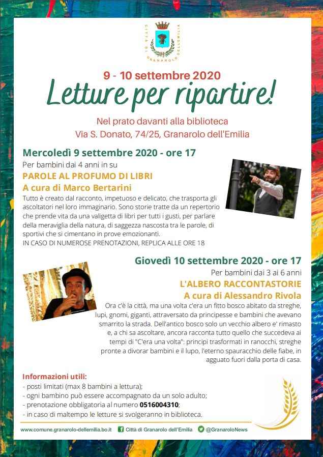 Bambine e bambini, siete pronti per ripartire insieme a noi? Vi vogliamo raccontare alcune bellissime storie, nel prato davanti alla biblioteca comunale Gianni Rodari.