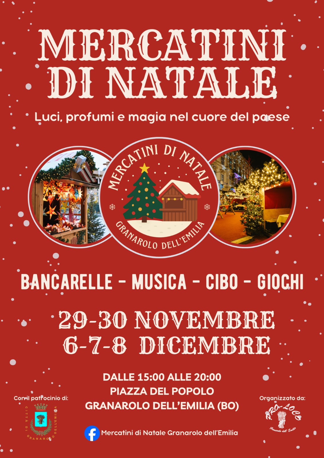 Anche quest’anno Granarolo dell’Emilia vivrà l’atmosfera più magica dell’anno con i Mercatini di Natale, in programma il 29 e 30 novembre e il 6, 7 e 8 dicembre in Piazza del Popolo.
