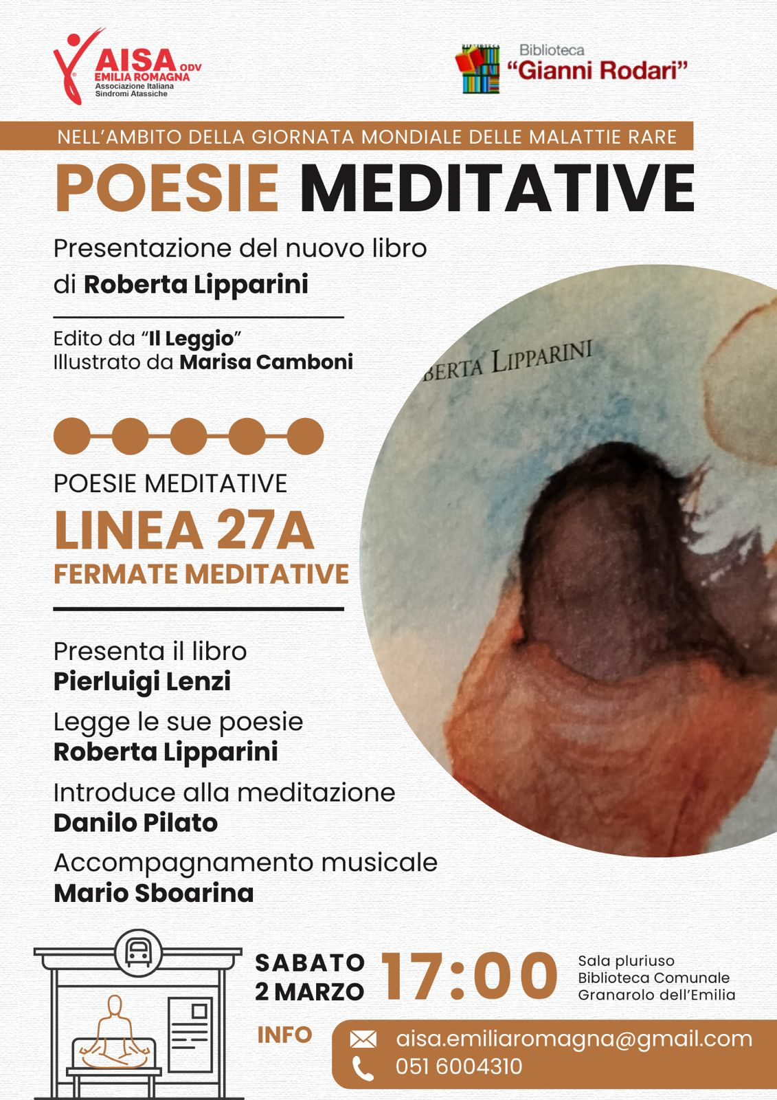 Sabato 2 marzo, alle ore 17 in biblioteca comunale "Rodari", viene presentato il libro di Roberta Lipparini "Poesie meditative - Linea 27A: fermate meditative".