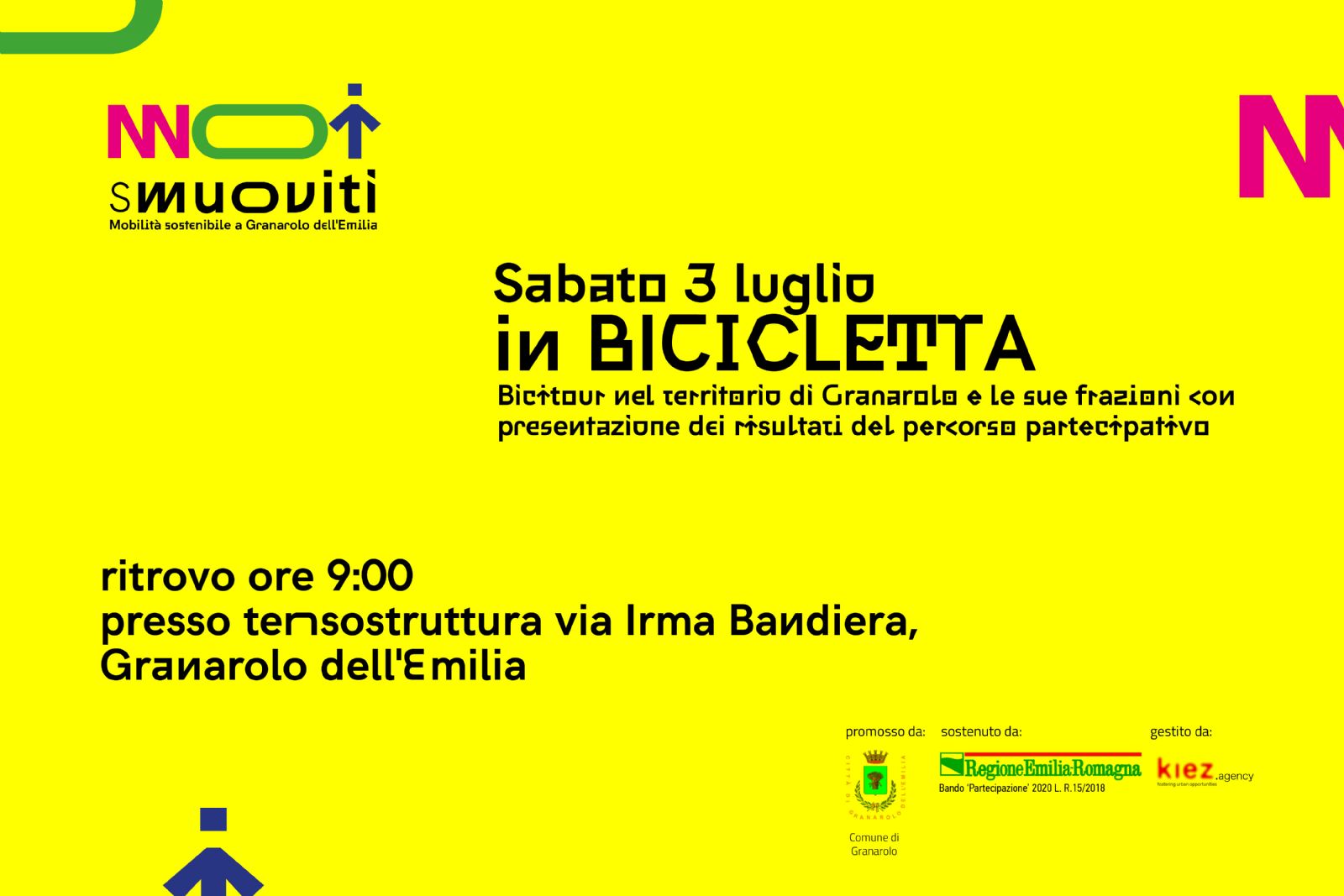 Si concludono gli incontri pubblici del percorso partecipativo ‘sMUOVITI: Mobilità Sostenibile a Granarolo dell’Emilia’ iniziativa volta alla costruzione di uno scenario condiviso e strategico sulla Mobilità Sostenibile del territorio. Ma Granarolo non si ferma e continua a sMUOVERE la comunità per costruire insieme un territorio sempre più sostenibile! Partecipa anche te Sabato 3 Luglio dalle ore 9.00 alle ore 12.30 all’evento conclusivo ‘in BICICLETTA’ : una biciclettata collettiva alla scoperta del territorio di Granarolo dell’Emilia e in cui verranno presentati gli esiti del percorso partecipativo ‘sMUOVITI’.