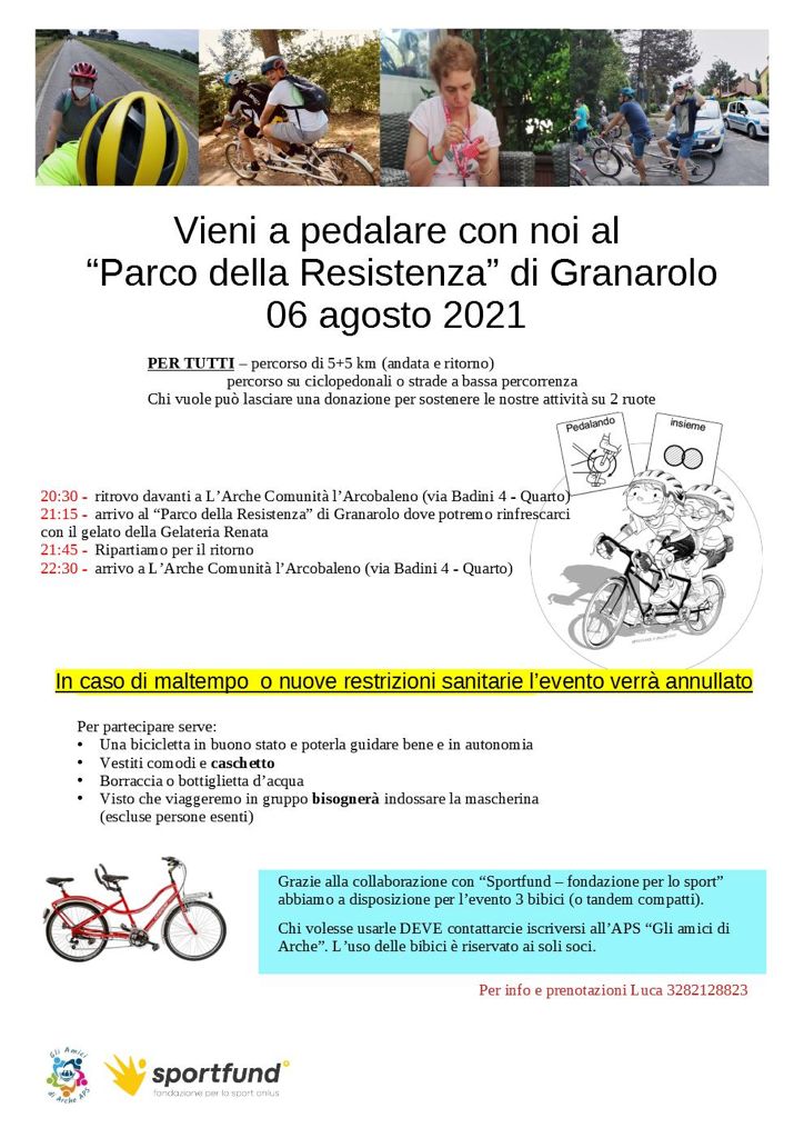 Il 6 agosto 2021 l'associazione l'Arche di Quarto organizza una pedalata rivolta a tutti gli interessati con un percorso complessivo di 10 km. su ciclopedonali o strade a bassa percorrenza.
