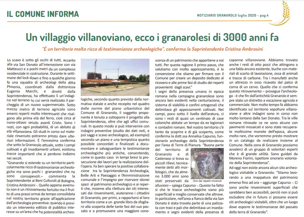Gli studi sul materiale rinvenuto potranno presto dare ulteriori informazioni ma questa è l’ennesima conferma che, sotto la Granarolo attuale, sotto i campi coltivati e gli insediamenti urbani, esistono tracce importanti che si perdono indietro nei secoli.